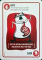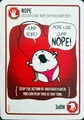 A Nope can be played at any time before an action has begun, even if it’s not your turn. Any cards that have been Noped are lost. Leave them in the Discard Pile.